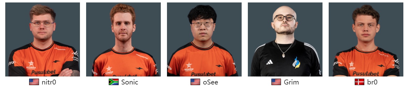 这支美国战队拥有大满贯美国队长nitr0,南非第一人Sonic,狙击手oSee,光头强Grim和丹麦小将br0。他们也许不是观众们心中的热门,但他们仍在不断突破自身的上限。