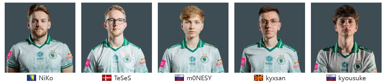 动物园四天王之一,也是如今CS赛场上的绝对顶流,拥有豪华阵容:步枪界最长的河NiKo,黄色闪光m0NESY,青训天价转会传说kyousuke,丹麦神龙TeSeS和北马其顿指挥kyxsan。作为最受中国玩家期待的CS天团,他们来CAC的目标只有一个——拿下冠军!