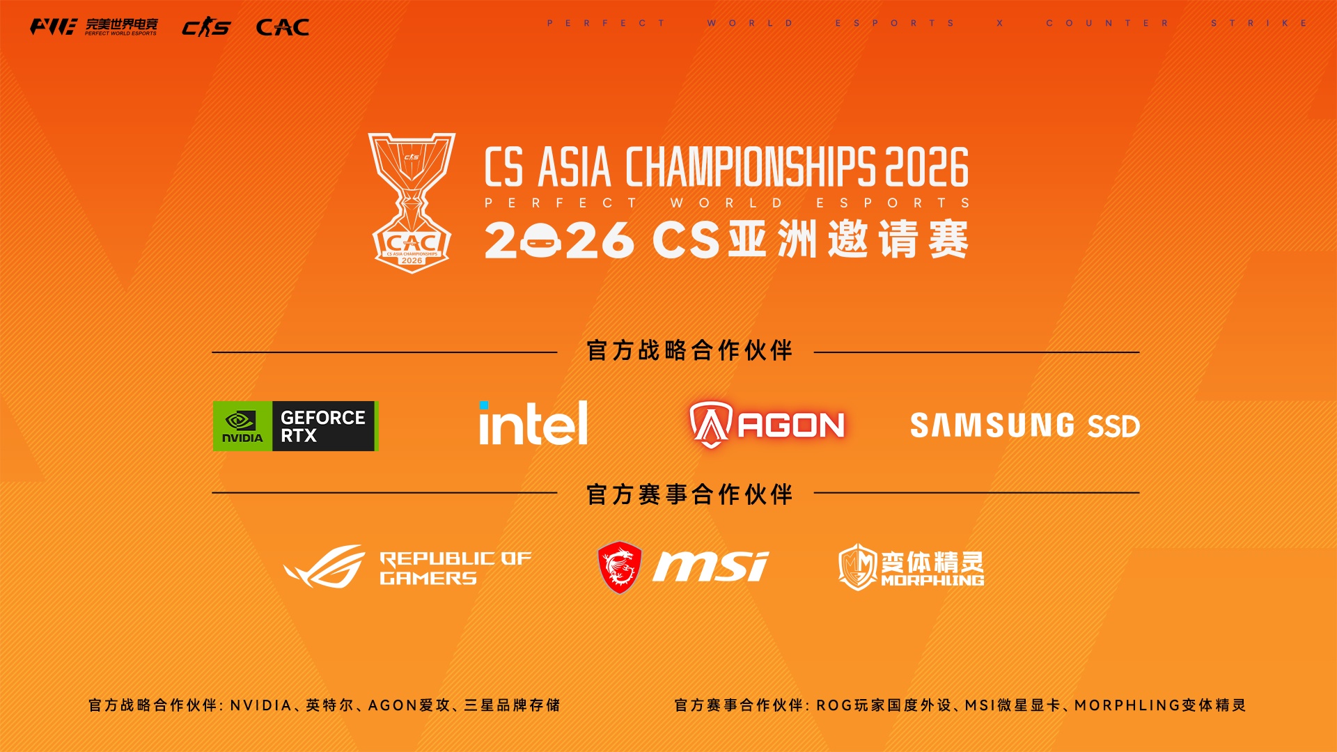 官方赛事合作伙伴:ROG玩家国度外设、MSI 微星科技显卡、Morphling变体精灵
