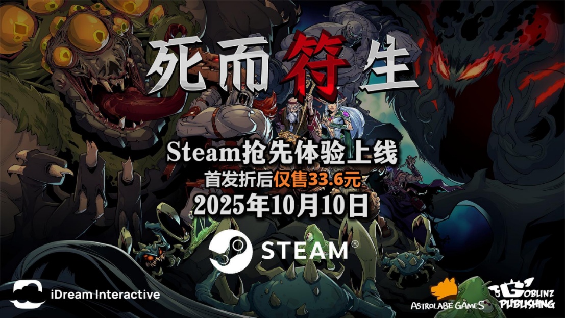 Astrolabe Games宣布,符文老虎机牌组构建游戏《死而符生》现已于10月10日今天正式开启Early Access登上PC Steam,全球最低的国区定价48元,叠加首发惊喜折扣-30%,当前价格仅售33.6元,现在购入立刻成为掌控法典的传奇符文大师!