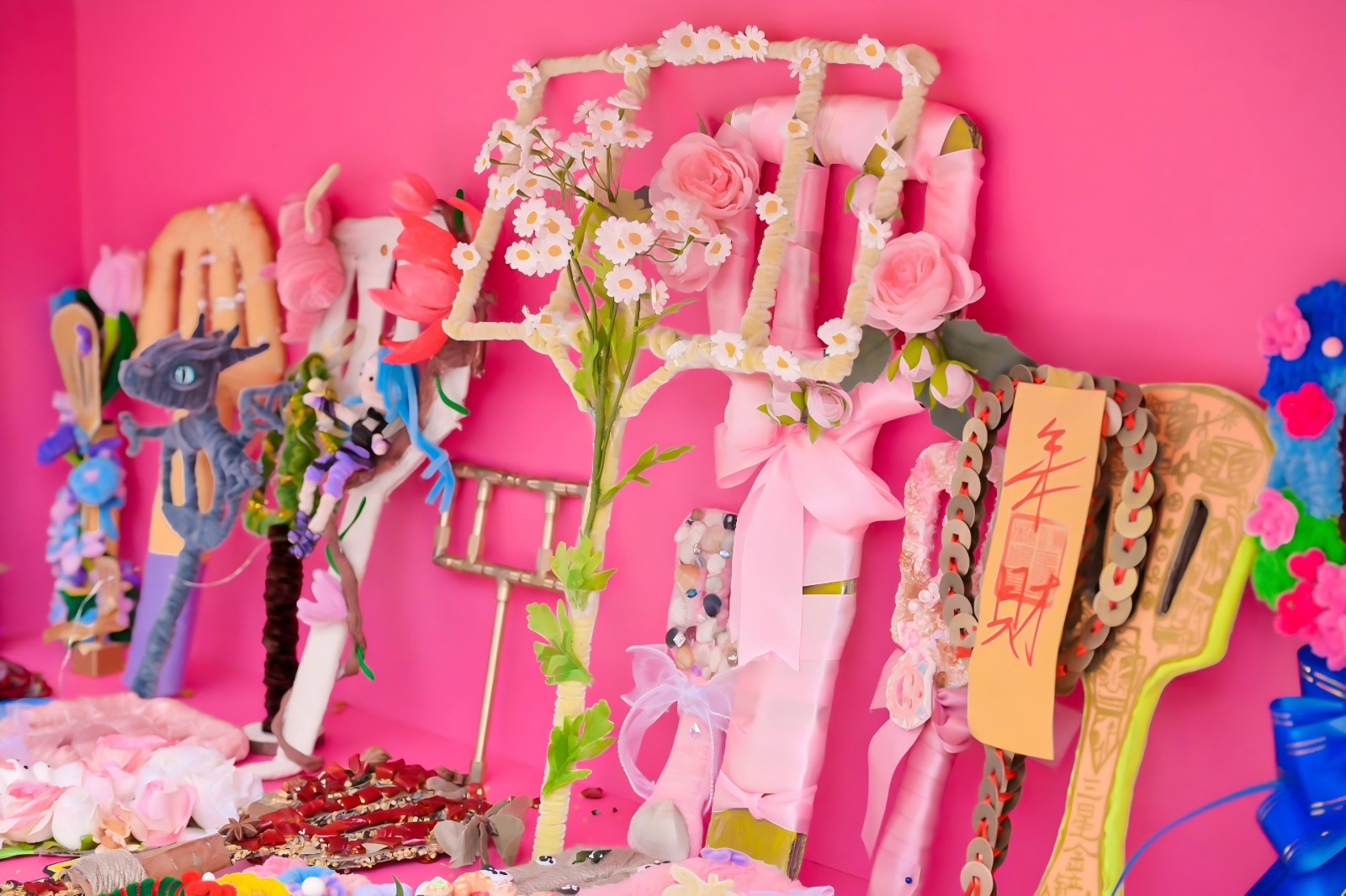 另一位玩家的作品则充满了温润的家国情怀。她带来了一把由青花瓷片拼凑的“青花瓷”纹样的铲子,图案灵感来源于我国传统文化青花瓷。她分享道,“电竞的活力与青花瓷的古典在这里相遇,就像我今天在这里,把一份文化的记忆,交到一位新朋友手中。” 这把铲子不仅是一件物品,更成了一份流动的、承载着文化温度的情感信物。