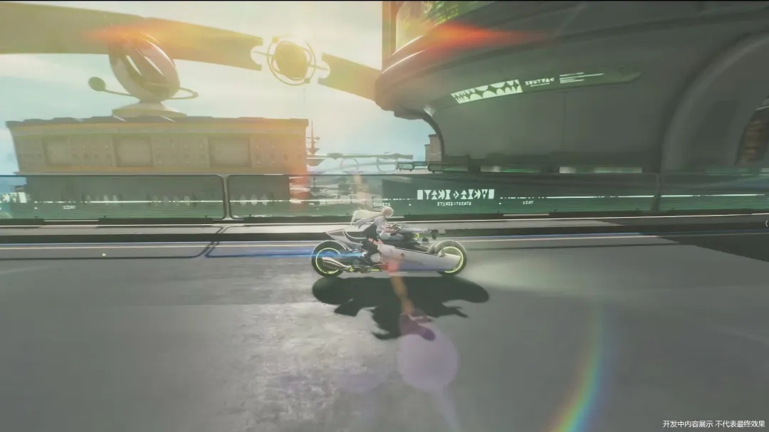 设想一下,以第一人称视角紧贴车头,在动力强劲的车载音乐中疾驰在公路之上,观赏星空之下科幻设计与荒芜原野的碰撞。路上偶尔会遇到特殊探索事件,或是在一段风景绝美的地区来上一场摩托竞速,这种视觉体验拉满的沉浸感会有多爽。