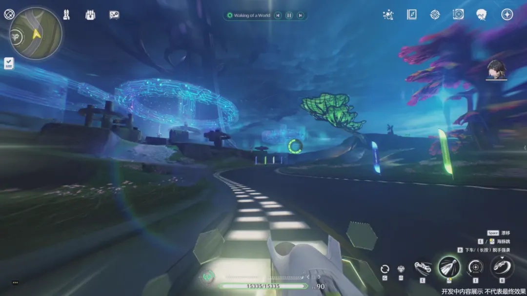 另外,科考摩托拥有“海豚跳”和漂移能力,可以轻松跨越地图中的障碍物,后期也能解锁空中二段跳等额外能力。科考摩托还支持特殊的第一人称视角,驾驶的过程中也可以自由选择车载音乐电台。