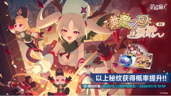 与此同时,「薯条之国的颂歌」秘纹招募活动也限时登场,全新限定5星秘纹「雪夜惊喜」获得限时招募概率提升。「雪夜惊喜」可为火属性队伍带来强力加成,获得该秘纹后,可解锁一段圣夜使者菈露的专属记忆故事,以菈露(圣夜)为主角的精美插图,以及一曲兼具童心与浪漫的俏皮旋律,插图和音乐均可设置在主界面展示和播放。