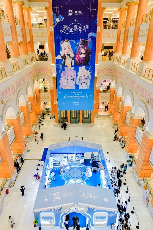 此外,晨光旗下独立品牌九木杂物社还以“未来雪屋”为主题,以冬季冰雪元素为主视觉设计,在环球港现场打造了潮玩嘉年华快闪,不仅有冬季限定装扮的UUTOY等身模型供消费者拍照打卡,还有超高人气的一日店长活动、专为可动人偶搭建的微缩景观拍摄专区和星光巡游等丰富多彩的互动活动,全方位激活二次元与潮玩圈层。