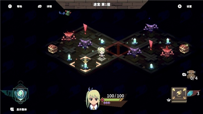 玩家在有限的回合数内探索地下迷宫,决定前进路线,进行战斗、获取道具等。