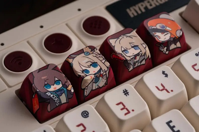 因此,设计团队从四部作品中,分别选出了阿米娅、佩丽卡、澄、薇³这四位玩家们熟悉且喜爱的重要角色,以她们的形象作为最直观的视觉体现,制作了可任意替 换 F1~F12 的 4 个键帽,用户可以随心替换打造专属于自己的风格。对于键盘上已普遍形成使用习惯的键位进行改版,自然地融入更多鹰角元素,通过符号、色彩与微小细节的重构,让玩家在每一次敲击中都能感受到熟悉的游戏氛围。