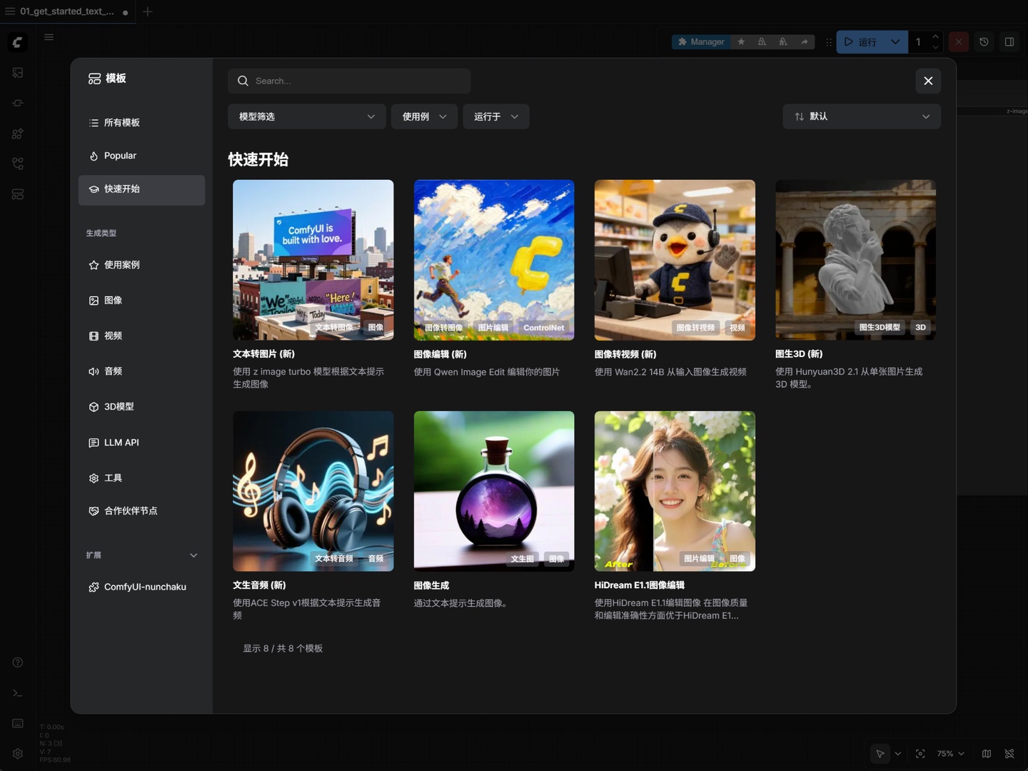 下面介绍了如何深入使用更多 ComfyUI 模板,体验采用更高级的图像与视频模型的创作流。