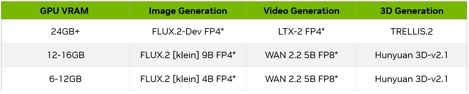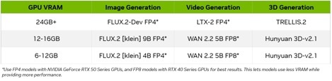 [2] *为获得最佳效果,建议在 NVIDIA GeForce RTX 50 系列 GPU 上使用 FP4 模型,在 RTX 40 系列 GPU 上使用 FP8 模型。这样可以在占用更少显存的同时提供更高性能。