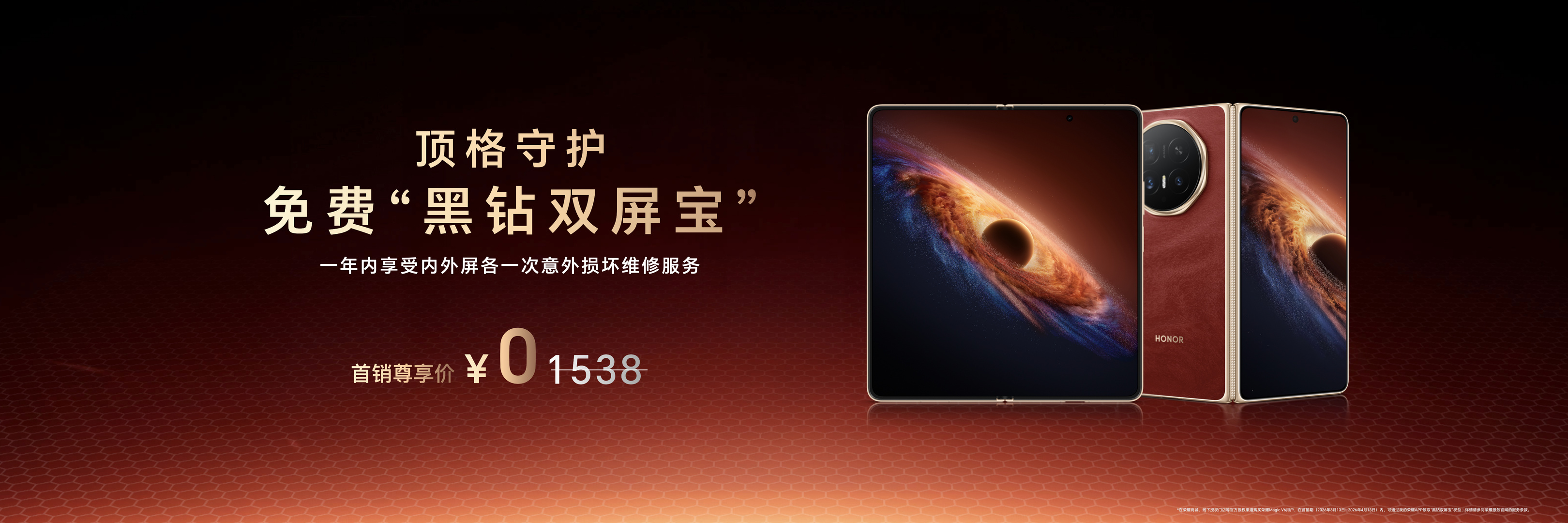 除了屏幕硬件实力的提升,在荣耀Magic V6首销期间购买,还将获赠免费“黑钻双屏宝”。折叠机屏幕保险权益再度加磅,用顶格守护解决折叠机使用后顾之忧。