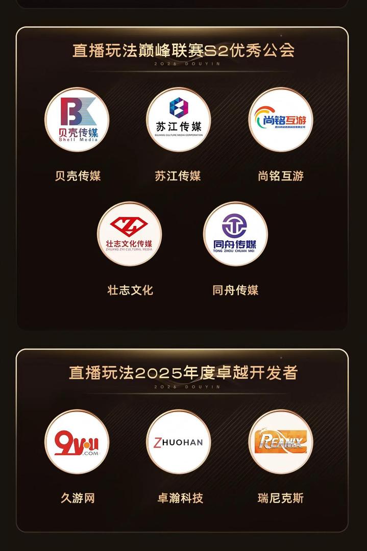 本次大会上,平台还为过去一年中表现突出的开发者、主播与公会授予了荣誉,共颁发出「直播玩法巅峰联赛S2十佳玩法」「直播玩法巅峰联赛S2十强主播」「直播玩法巅峰联赛S2优秀公会」「直播玩法2025年度卓越开发者」等四大类奖项,期待以荣誉感鼓舞各方积极性,以标杆力量引领直播玩法行业加速增长和生态进一步繁荣。