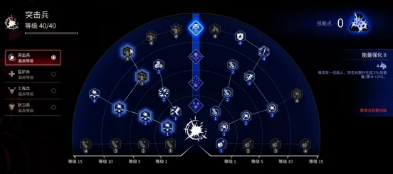 这个技能系统比较特别的是,随着职业等级的提高,玩家可以自由选择不同的技能形态,拿坦克举例,他的防护罩可以牺牲范围,变为可以连续释放三次,提高自保能力,减少功能性;到了游戏后期,还能再次牺牲释放次数,使得护盾可以随人物移动。低难度的时候,改变技能形态的作用并不明显,即便只用枪也能通关,但在高难度里,一个站位失误都可能导致团灭的高压环境下,各兵种之间的配合,就显得尤为重要了。