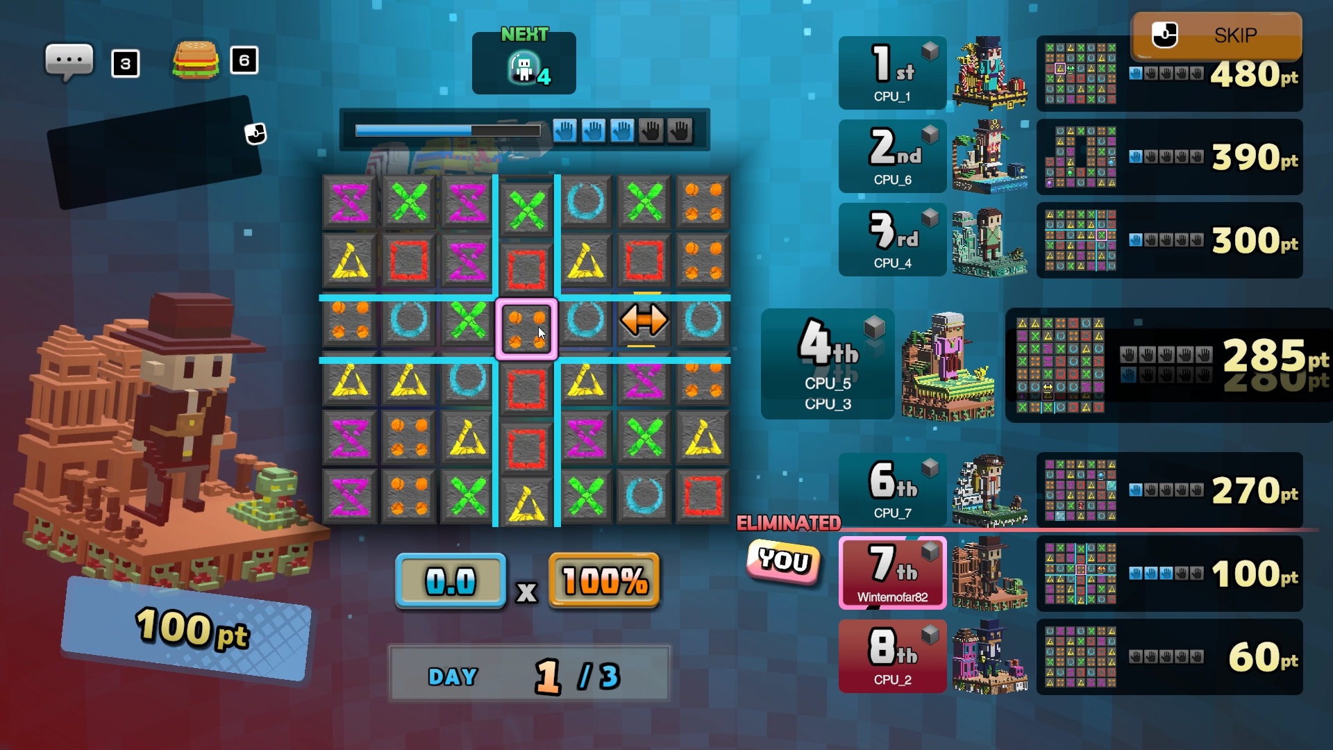 只是,在单人模式拿“半自动模式”爽拿分的玩家,并不能把自己的天赋带到多人模式中。游戏最高支持八人同时联机,其玩法与单人模式并没有明显差异。但相比于单人模式,本作的联机却更考验玩家的技术水平,不光是半自动模式彻底拜拜,更多的Debuff方块、需要和对手们拼手速的BUFF道具“遗物”等,都无不考验着玩家的反应力与策略思路。