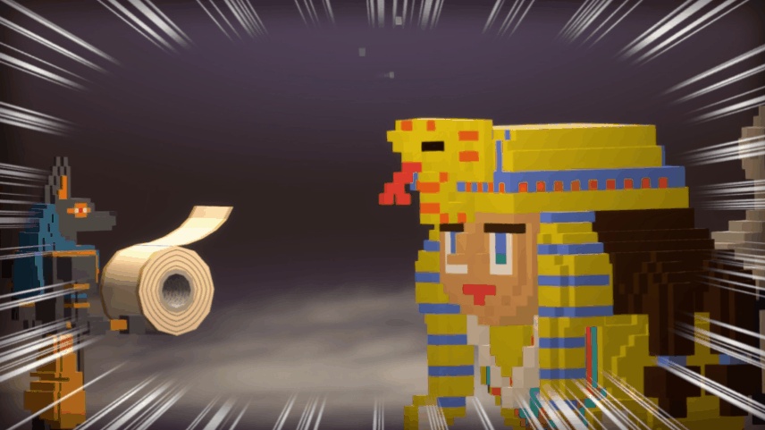 当然,设定上还是老一套。游戏中玩家是一名考古学教授,受朋友邀请来到藏宝之地,途中遇见各式各样的同伴与守护秘宝的神兽。但在其中,你可以看到古埃及守卫拿厕纸帮你干掉斯芬克斯,把手枪当钝器用的宝藏猎人等等幽默力度拉满的桥段,尤其配合游戏本身的复古像素风格,更是让这些场面显得十分生草,让人不禁感叹“还得是小作坊下料猛啊!”