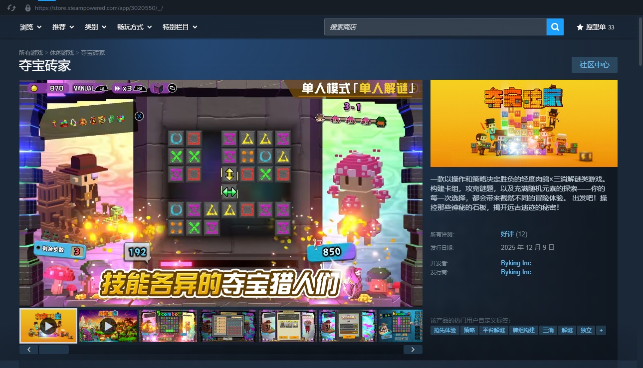 感兴趣的老哥可点击链接,前往《夺宝砖家》Steam商店页面了解更多详情>>https://store.steampowered.com/app/3020550/_/