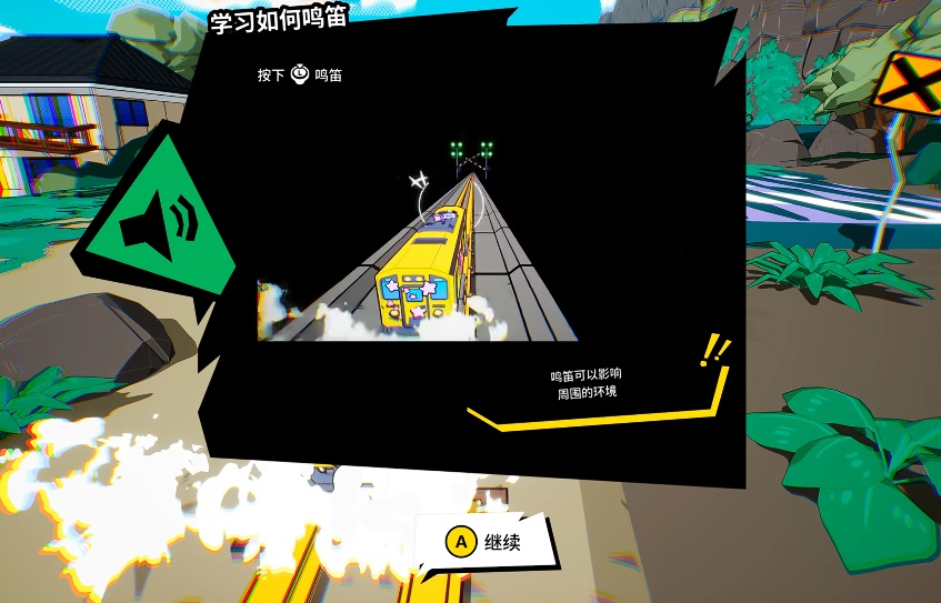 游戏一开始还是非常正常的画面,你要按下车喇叭让闸口都给你抬杠,要及时刹车躲避落石。