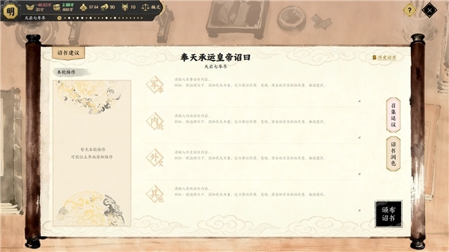 《历史模拟器:崇祯》是国内首款AI原生历史策略游戏。它以明朝真实史料为基础,依托千问模型重构明末系统,玩家需通过自然语言拟写诏书、颁布政令。面对流民暴动、东林党争、辽东战事交织的复杂局面——玩家的每个决策都将触发AI模拟的连锁历史反应,亲历“裁撤驿站逼反李自成”、“加征辽饷激化民变”等关键节点的抉择困境。