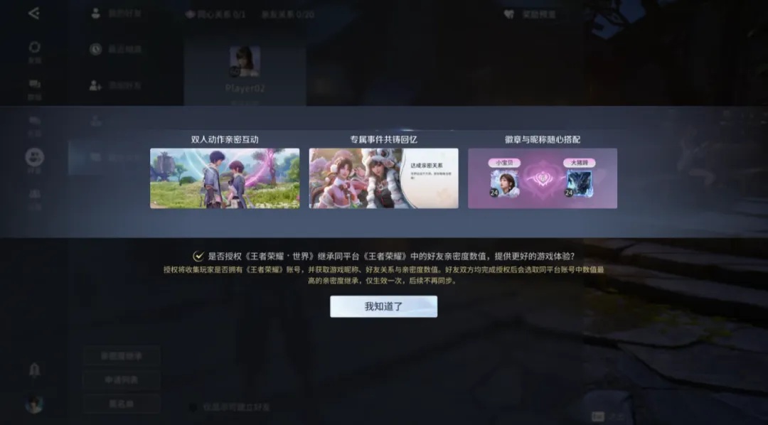 亲密度直接从《王者荣耀》继承过来,那些一起打了上千场的兄弟,不用重新刷好感,该是死党还是死党。