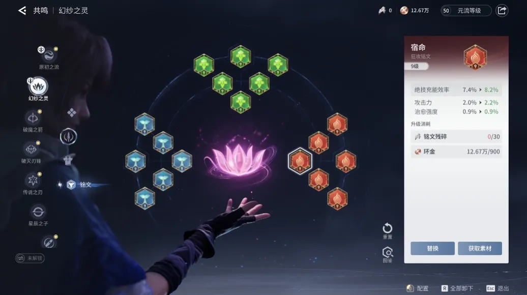 老玩家一看到那个熟悉的铭文页界面,估计都会会心一笑,视觉设计沿袭了《王者荣耀》的经典ui样式,机制也非常相近。