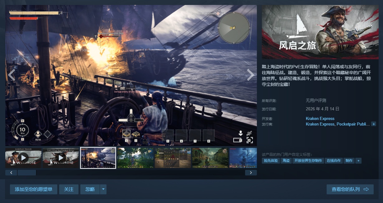 Kraken Express北海巨妖号快船(前身为 Windrose Crew风启之旅团队)的海盗们欣喜宣布,备受期待的联机co-op海盗主题生存冒险游戏《风启之旅》今日正式开启抢先体验。