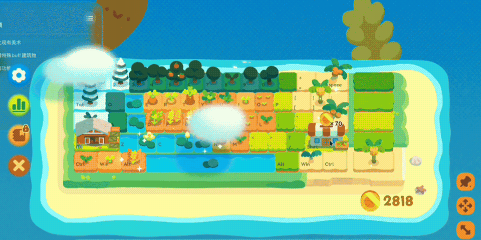 在游戏中,每一个键位都对应着一块方方正正的土地。你敲击的频率越快,土地里的植物生长得就越欢。这种“敲击即浇水”的设计,让原本枯燥的工作突然有了某种奇妙的养成感。当你噼里啪啦敲完键盘抬头一看,桌面上已经郁郁葱葱,那种丰收的喜悦绝对让你成就感满满!
