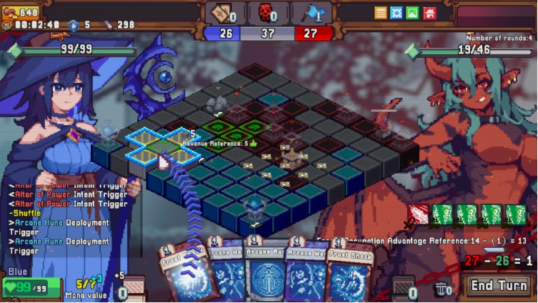作为一款融合空间策略与卡组构筑玩法的作品,《色系战记》对传统 Roguelike 卡牌战斗机制进行了大胆革新。游戏不再依赖卡牌直接造成伤害,而是通过网格战场中的领地控制与布局策略决定胜负。玩家需要利用具有不同形状与摆放规则的卡牌,在棋盘上扩张势力范围、守护核心,并通过占领区域的大小转化为攻击效果,使每一场战斗都充满策略深度与变化。