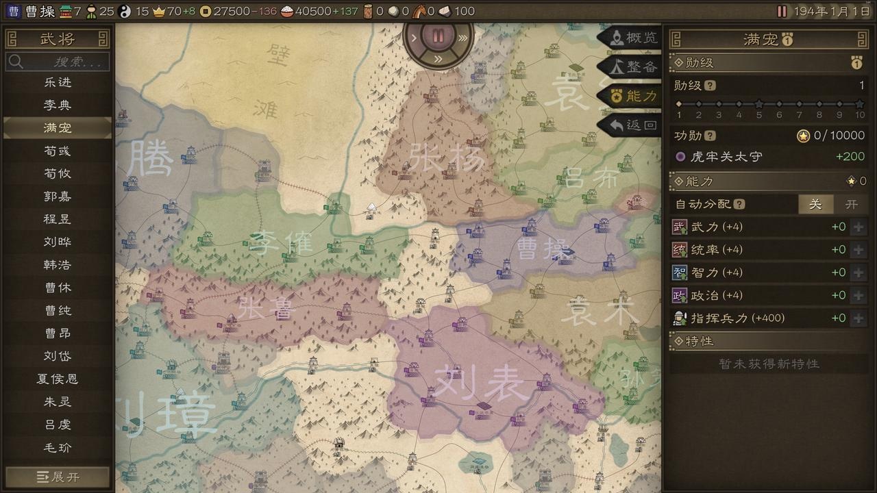 不同武将的区分,除了常见的属性、性格与兵种适性外,游戏还为几乎每个武将都设计了专门的天赋特性,让玩家既可以用关羽张飞这样的神将战场开无双,游玩小势力时,也能依靠臧霸、文聘这样的二流武将,通过运营和策略与强大敌人一战。
