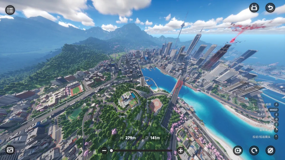 自拍模式下,你可以实时操控角色动作、调整镜头焦距与俯仰角度,还能暂停时间、切换滤镜、调节景深。而无人机模式更夸张,允许镜头升至数百米高空,实现全域无遮挡俯拍,轻松捕捉城市天际线和海岸地貌等大尺度景观。