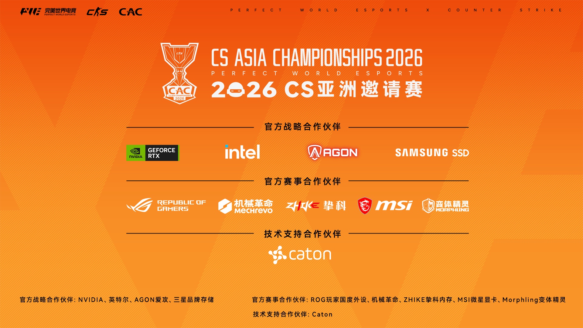 官方赛事合作伙伴:ROG玩家国度外设、机械革命、ZHIKE挚科内存、MSI微星显卡、Morphling变体精灵