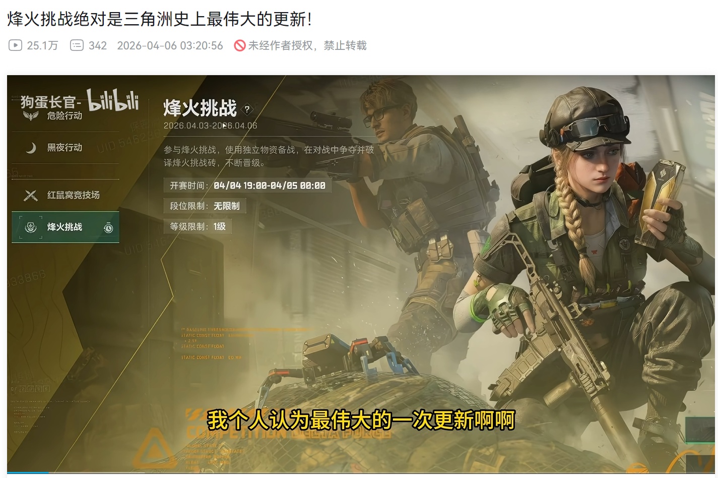 你可以看到由各路三角洲干员联合出演的“让学”名场面,也可以看到在评论区里大喊“让巡飞弹飞一会儿”的乌鲁鲁玩家。