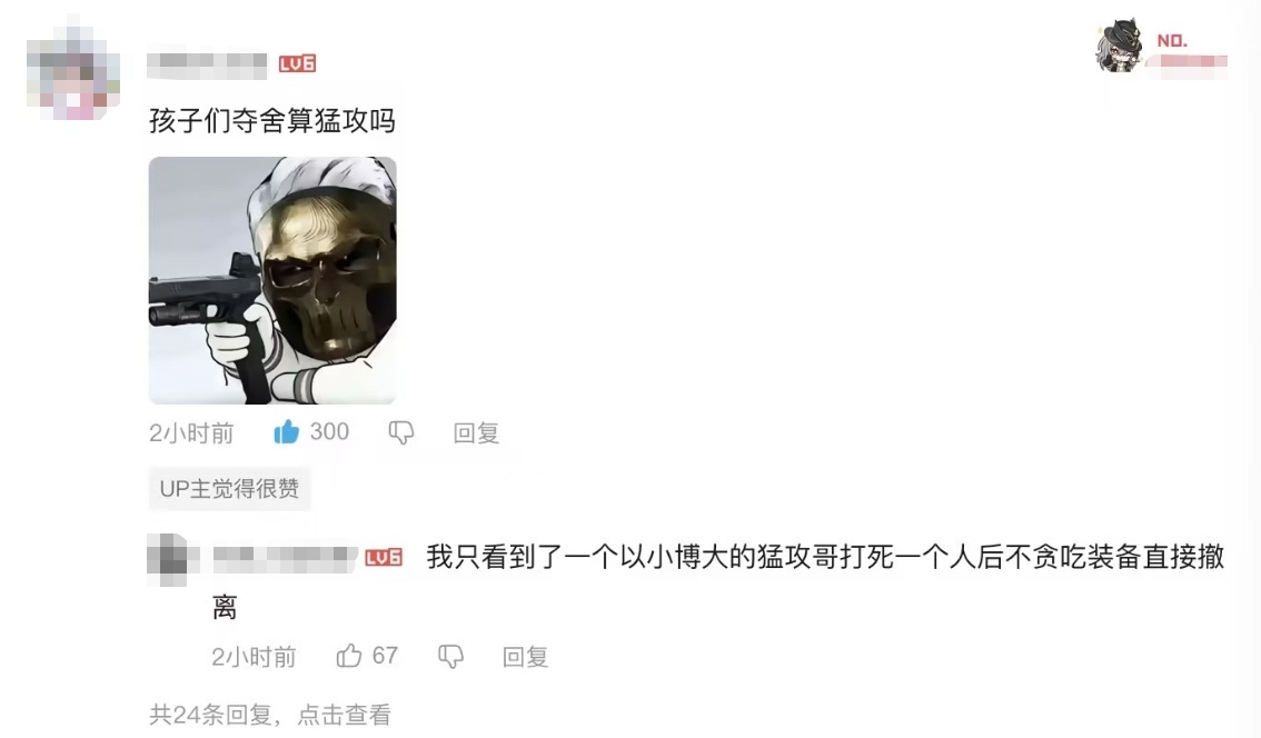 还有的玩家只想在地图中美美搜索物资,能避战的时候尽可能地去避战,将所有的精力都投入到摸宝中…这更是“猛攻”。