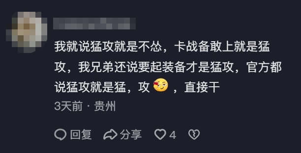 官方借这些镜头传达的意思也很明显:“猛攻”从来没有统一的标准,它的核心是玩家对所爱玩法的极致坚持与投入。