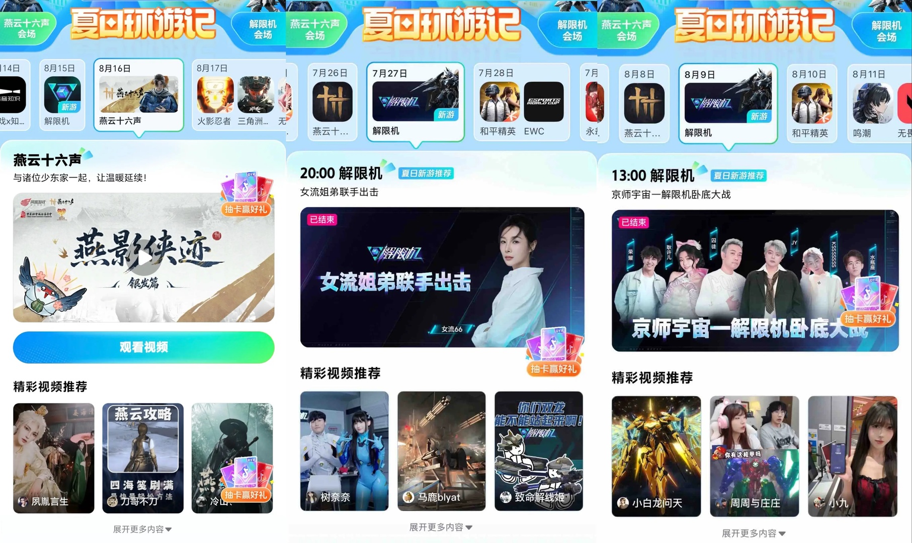 官方独家内容、繁荣优质的达人生态和海量PUGC构建了抖音游戏丰富且独特的内容生态,有效提升用户对游戏的认知和喜爱度。在今年夏日环游记活动期间,《燕云十六声》、《解限机》等热门游戏,联动知名游戏主播打造专场直播,合作生态作者创作优质内容,吸引玩家眼球,提升产品曝光,让更多用户从“爱看”变成“想玩”。