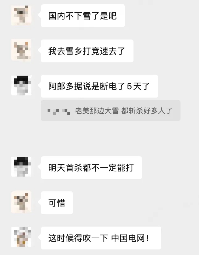 加上前一段时间的各种“斩杀线”“对账”,看到中国玩家不用操心停电,开着空调暖气窝在电脑前快乐魔兽,老外们羡慕到后槽牙都要咬碎了:“老中天兵什么时候去解放落后的牢美?”