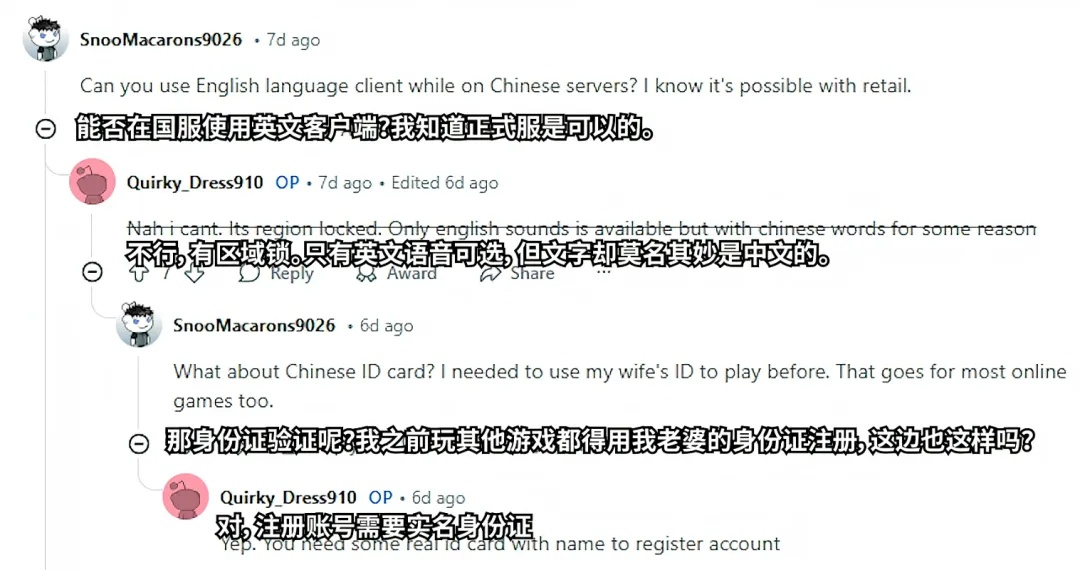 在注册账号的时候,没有国内手机和身份证成为了拦在了老外面前的第一个坎,无法进行实名验证就等于进不了国服的门,一下子就给老外们打了个措手不及。