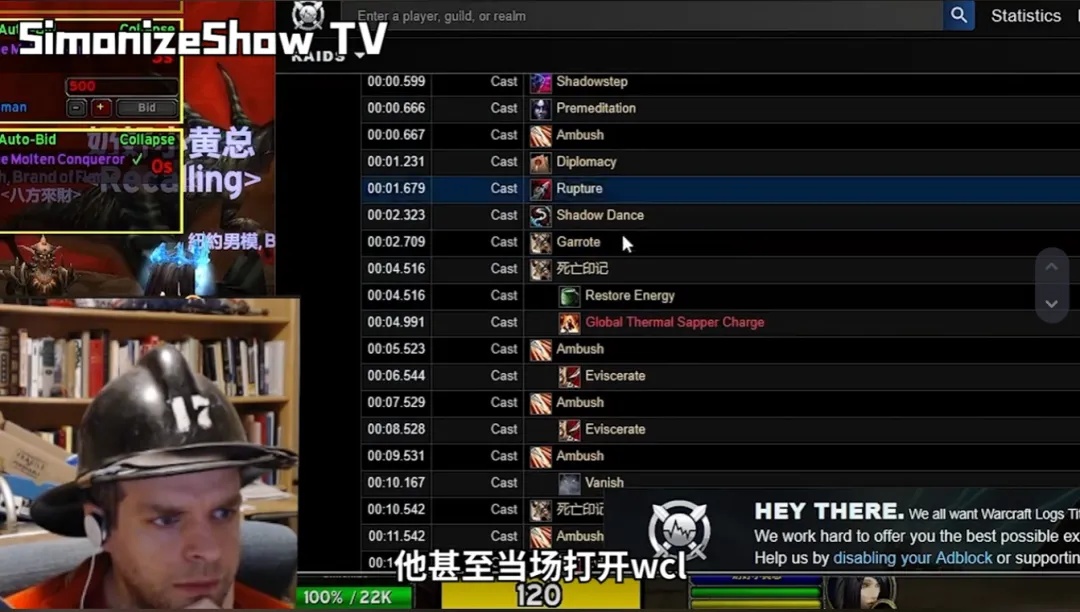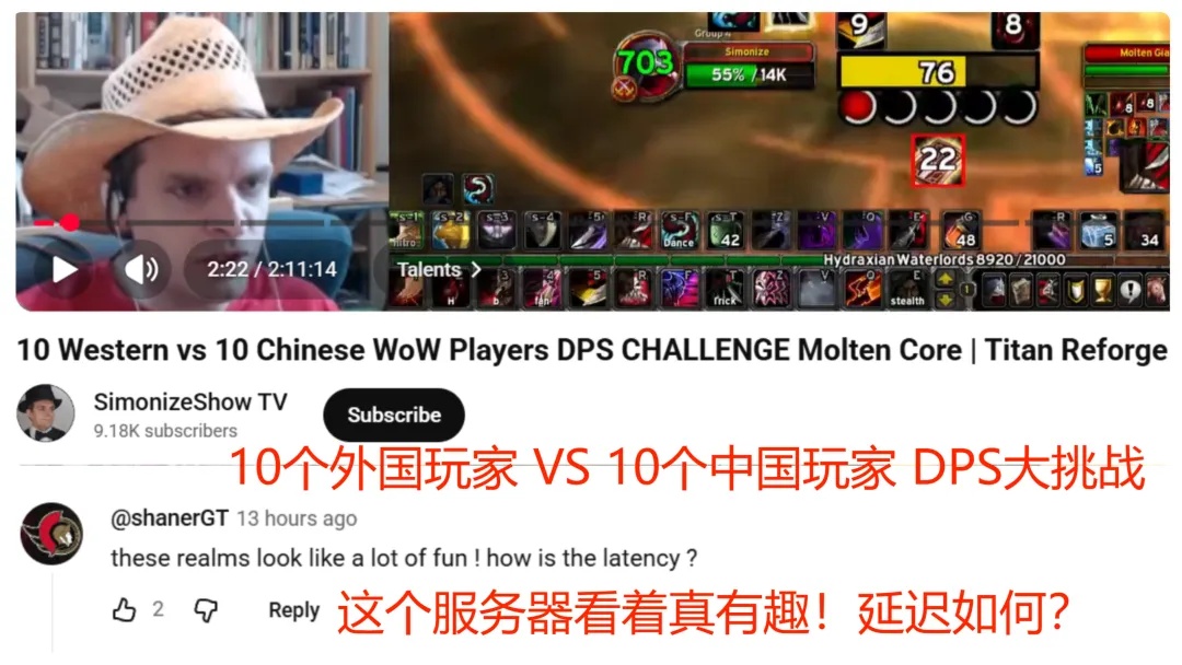在这种“更快更高更强”的竞争氛围的渲染下。国内外玩家的竞争也扩展到了团本之外的其他领域。比如国内的潜行者顶尖玩家“神奇大叔”就和国外知名潜行者主播Simonize开始対飚DPS看看是谁是真正的贼王。赛后,略逊一筹的Simonize甚至直接开了WCL偷师取经。
