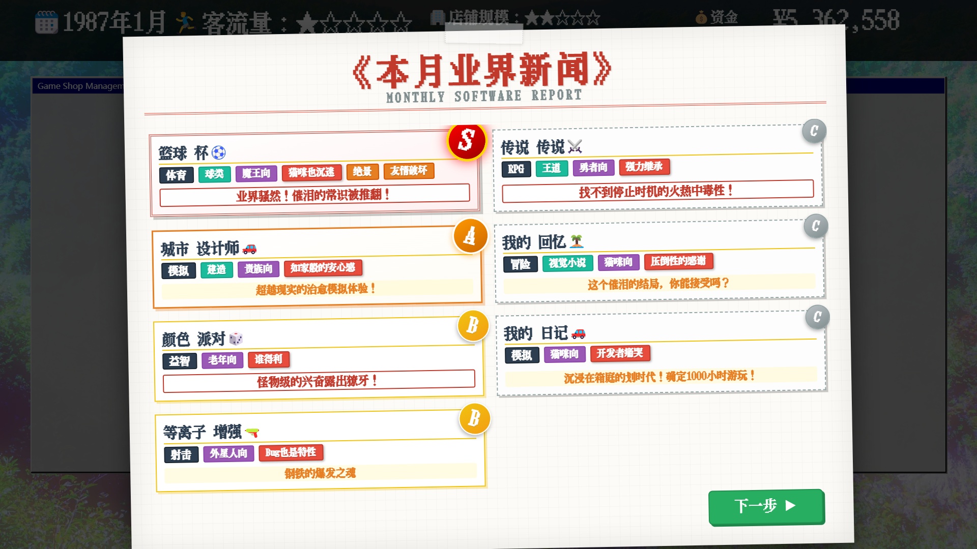 比起那些冷冰冰、充满复杂报表的模拟经营,我们更愿意相信店长的“直觉”与“眼光”。 在《夕阳游戏店》中,你的日常是关于热爱与判断的艺术。你需要时刻关注最新的游戏动态,根据媒体评价与玩家期待值来预测谁会成为下一个月的销量冠军。