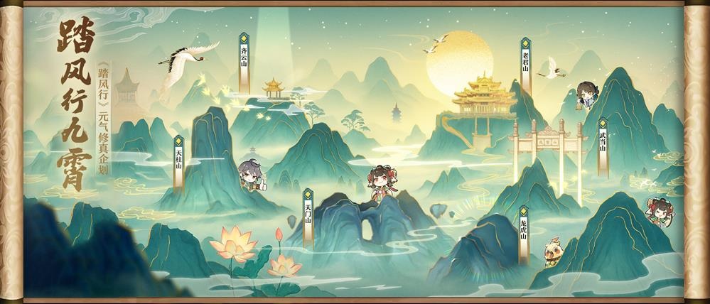 道家名山齐聚《踏风行》,齐云山、老君山、武当山、龙虎山、天门山、天柱山六大仙山恭祝《踏风行》公测上线,助力玩家元气修仙,挂机飞升。活动期间六大仙山惊喜不断,欢迎玩家线下打卡!