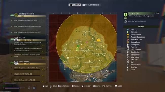 比如最明显的,DMZ模式有一个中心向外扩散的毒圈,正好跟吃鸡反着来。地图上有特别多的撤离点,你可以早早溜号,或者在毒圈吞没之前杀出重围,抢上最后一班飞机。