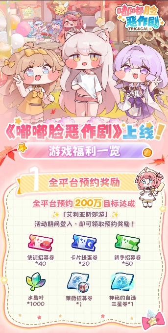 由Bilibili代理,EPIDGames开发的超可爱解压二次元手游《嘟嘟脸恶作剧》于2025年12月18日国服正式公测上线!首日即可获得130连抽,同时解锁多项奖励,包括游戏内★3角色自选*2、水晶叶等多项游戏道具!快来艾利亚斯开启新冒险吧!