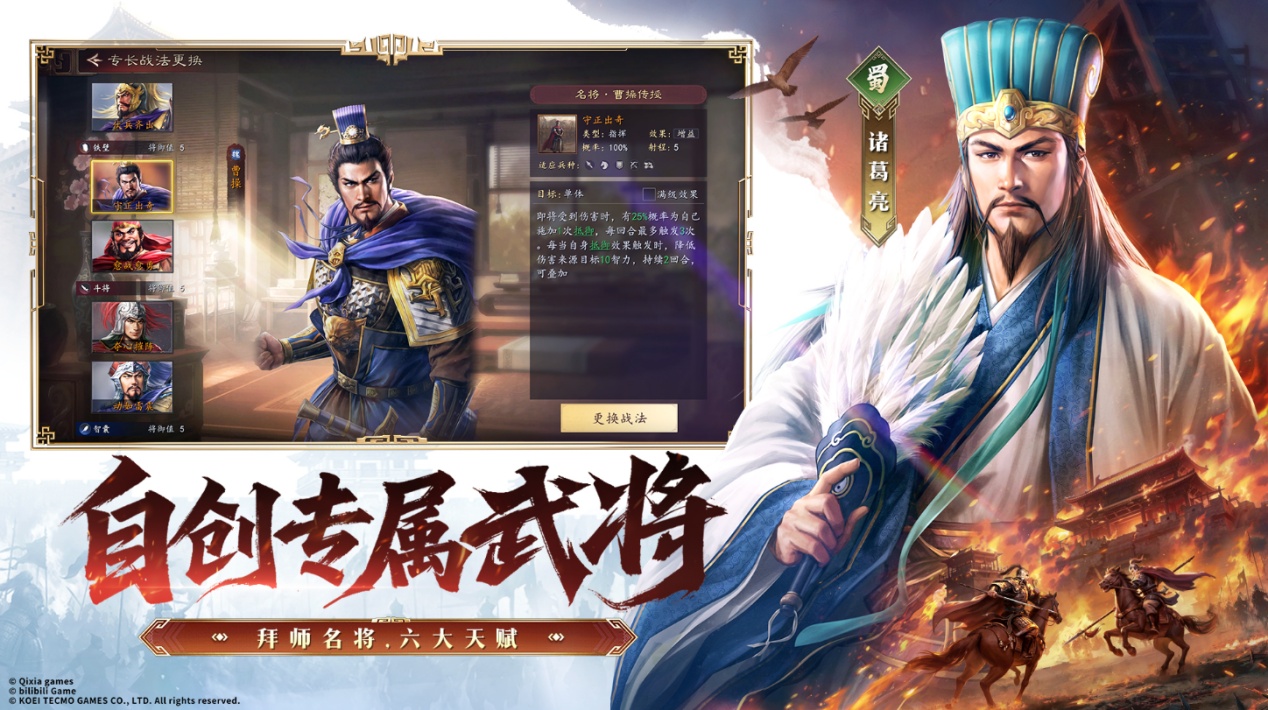 在视觉呈现方面,游戏在传承经典《三国志》美学的同时,通过次世代3D技术实现经典《三国志》角色立绘的全面升级。依托于最新的物理渲染技术,游戏中三国武将的服饰纹理、兵器细节等微观元素清晰可辨,玩家将能看清关云长青龙偃月刀上凛冽的寒芒,也能感受到貂蝉衣袂飘飘时的丝绸质感,让屏幕之内所见,即是活生生的英雄!